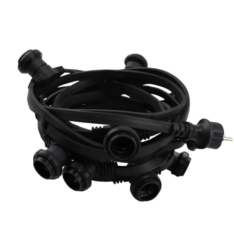 Dies ist eine Lichterkette mit 1 Fassung pro Meter. Sie ist in verschiedenen Längen erhältlich. Dieses starke Kabel eignet sich sowohl für den Außen- als auch für den Innenbereich und ist ideal als Terrassenbeleuchtung, Stimmungslicht oder Partybeleuchtung.
