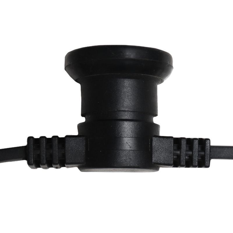 Die Kabel der Lichterkette sind von professioneller Qualität. Die Lichterkette hat ein starkes schwarzes Gummikabel und einen Stecker am Ende, der direkt in die Steckdose gesteckt werden kann. Das Kabel wird mit Endstücken und Dichtungsringen pro Fassung geliefert und ist sofort einsatzbereit!