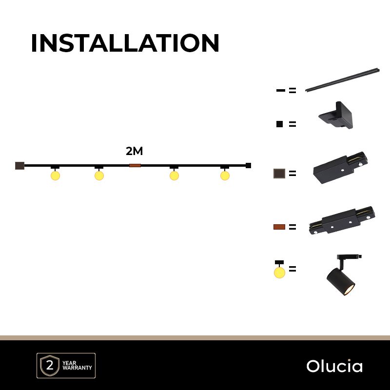 - 2M schwarzes 1 phase Schienenbeleuchtung System + 4 Elena Strahler