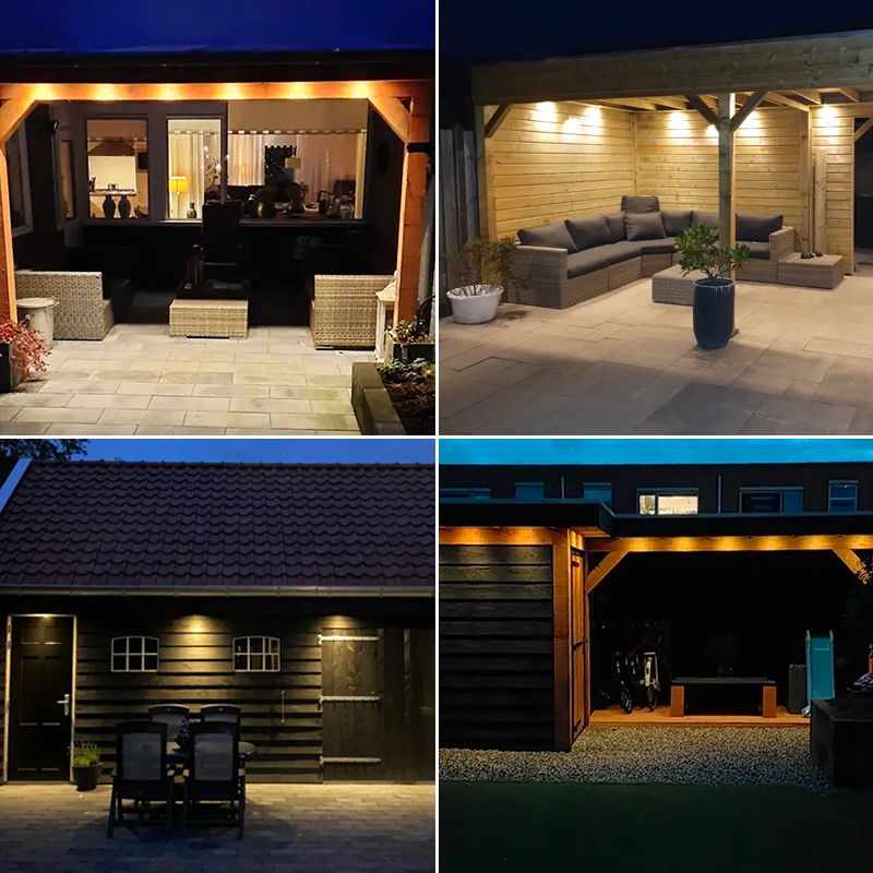 Die Terrassenüberdachung Beleuchtung hat den IP-Wert IP65 (staub- und wasserdicht). Dadurch ist die Lampe auch für Orte geeignet, an denen Wasser und Feuchtigkeit eindringen können. Der Transformator ist IP44 (spritzwassergeschützt).