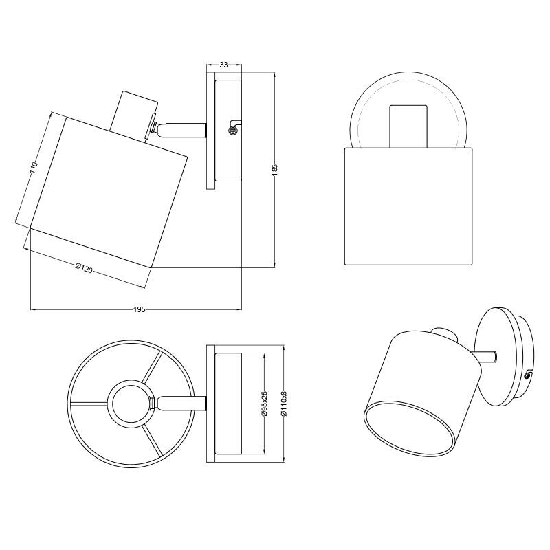 Schwarze Wandstrahler Modern, Sabrin- D: 8 cm, H: 13,5 cm