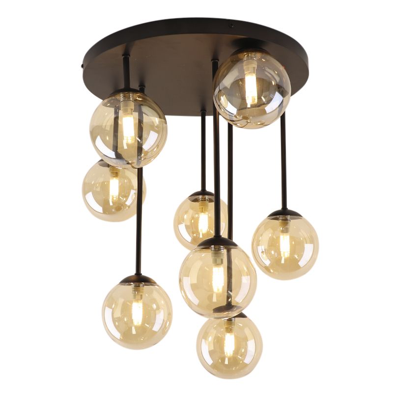 Die design Deckenleuchte Stacy ist in der Farbe Bernstein und aus Glas gefertigt. Die Bernstein Deckenleuchte wird ohne passende Leuchtmittel geliefert. Diese Lampe benötigt 8 Lichtquellen mit G9-Fassungen. Die maximale Wattleistung der Lichtquellen ist 40 Watt.