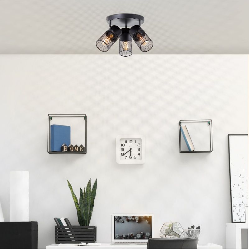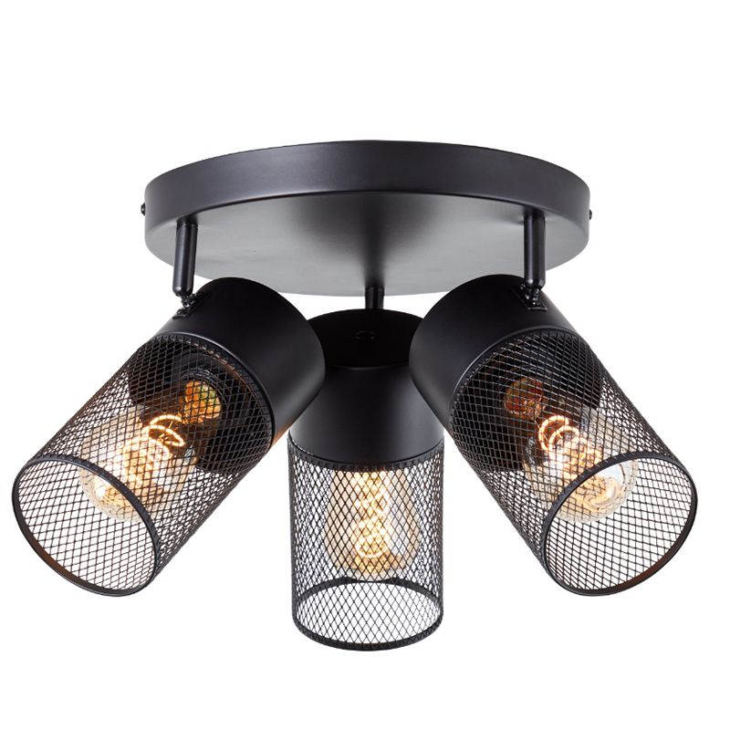 Der industrielle Deckenstrahler Georgino ist in der Farbe Schwarz und aus Metall gefertigt. Der schwarze Deckenstrahler wird ohne passende Leuchtmittel geliefert. Diese Lampe benötigt 3 Lichtquellen mit E27-Fassungen. Die maximale Wattleistung der Lichtquellen ist 40 Watt.