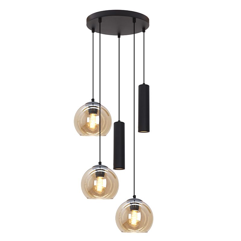 Die moderne Pendelleuchte Gianni ist in der Farbe Schwarz und aus Metall gefertigt. Die schwarze Pendelleuchte wird ohne passende Leuchtmittel geliefert. Diese Lampe benötigt 5 Lichtquellen mit 3 x E27 und 2 x GU10 Fassungen. Die maximale Wattzahl der Leuchtmittel darf 35 Watt für die E27-Lampe und 5 Watt für die GU10-Lampe nicht überschreiten.