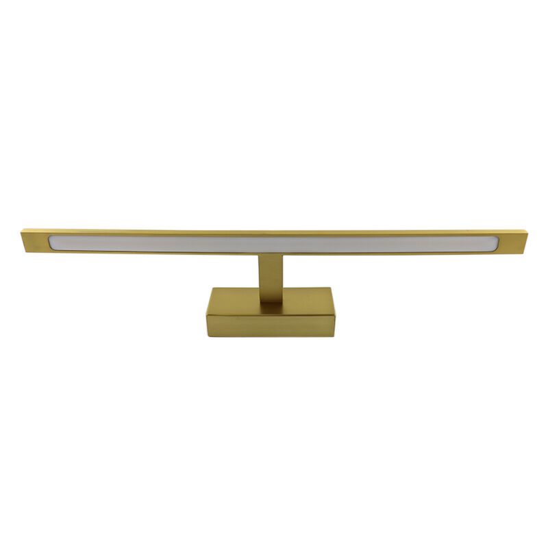 Die moderne Spiegelbeleuchtung Steffy ist in der Farbe Gold und aus Aluminium gefertigt. Diese goldene Spiegelbeleuchtung ist mit integrierter LED ausgestattet. Die Lampe hat eine Leistung von 8 Watt und die Lichtfarbe 3000K (warmweiß). Das ist warmweißes Licht, das eine gemütliche und warme Atmosphäre schafft.