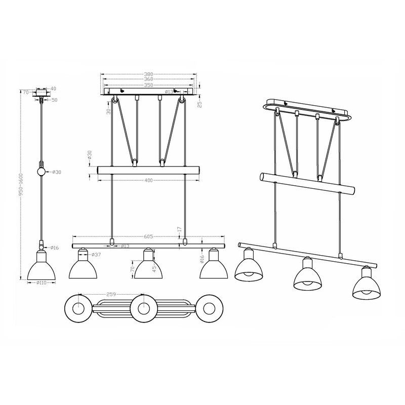 44,996-10 Werktage Nickel Pendelleuchte Vintage, Amarey- B: 107,5 cm, H: 215 cm
