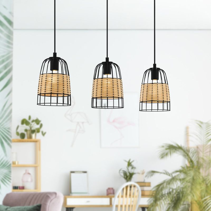 Die Rattan Pendelleuchte Guillaume hat die Farbe Braun und den Stil Landhaus. Diese landhaus Pendelleuchte wird ohne 3 passende Lichtquellen geliefert. Die Fassungen der Lampe sind E27-Fassungen, und die maximale Wattzahl der Lichtquellen ist 40 Watt.