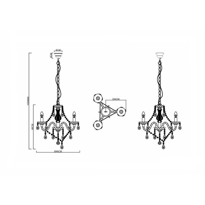 Der schwarze Kronleuchter Pedra hat den Stil Antik und ist aus Acryl gefertigt. Dieser antik Kronleuchter hat 3 E14-Fassungen, und wird ohne passende Lichtquellen geliefert. Die Lampe ist geeignet für Lichtquellen mit einer maximalen Leistung von 40 Watt.