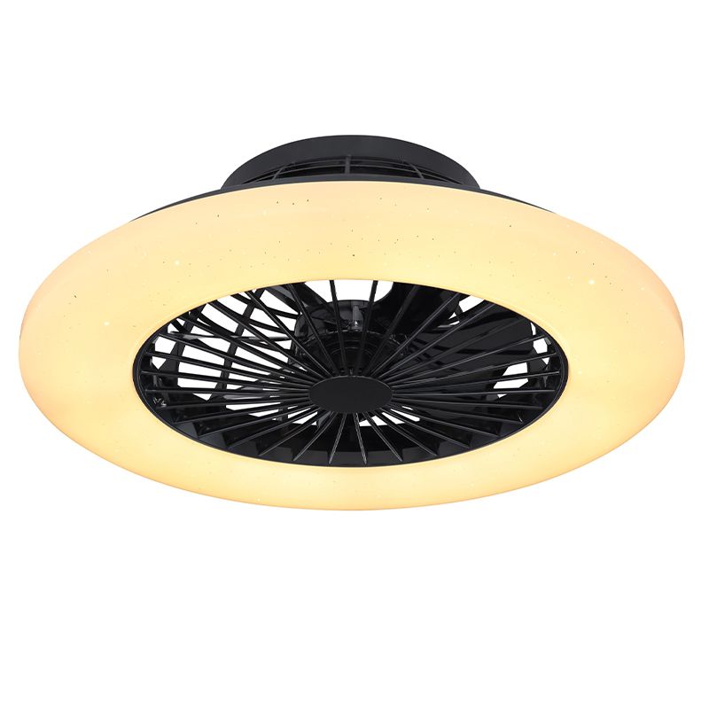 Moderne Deckenventilator Schwarz, Gonda, 40W, 3000K LED, mit Fernbedienung- D: 56 cm, H: 22 cm