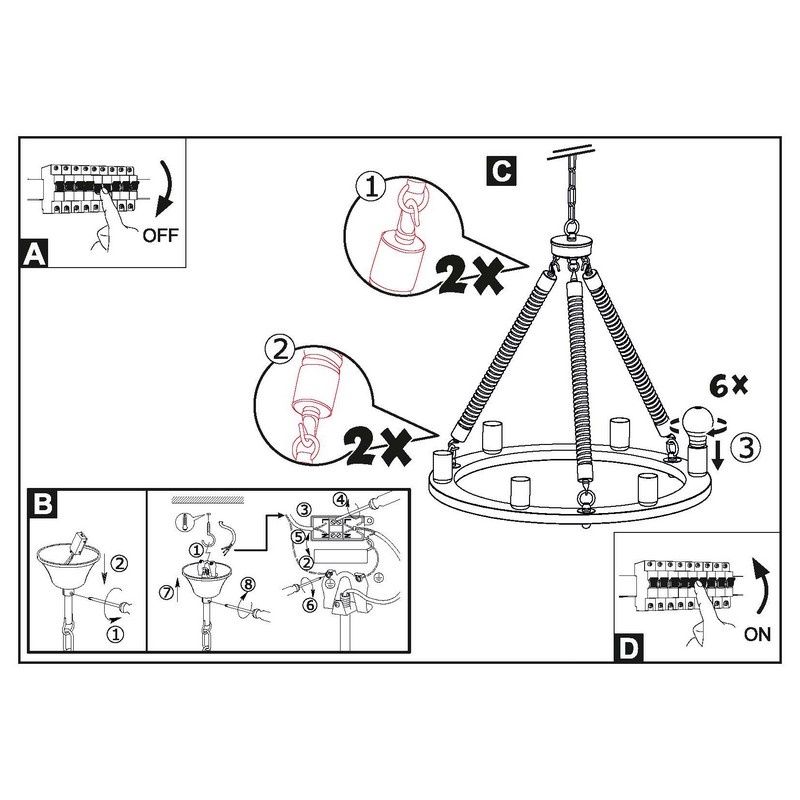 • 6 x E27 Fassung (exkl. Leuchtmittel)