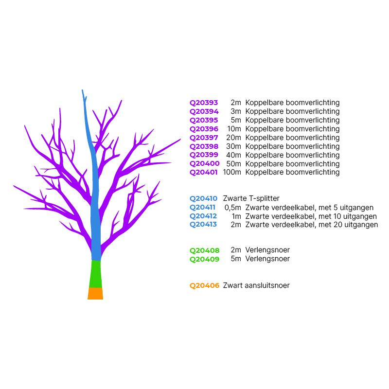 Schwarzes Verbindungskabel mit einer Leistung von 5 Ampere. Sie können unsere anschließbaren Weihnachtskabel, Eiszapfenlichter und Lichtvorhänge mit einer maximalen Leistung von 600 Watt anschließen.