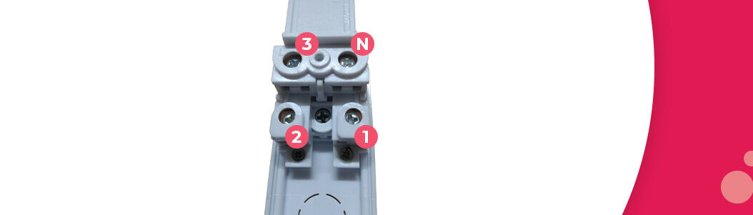 | Stufe 3 | Schließen Sie Phase 3 an, indem Sie das blaue Kabel an N und das braun/schwarze Kabel an 3 anschließen. |
