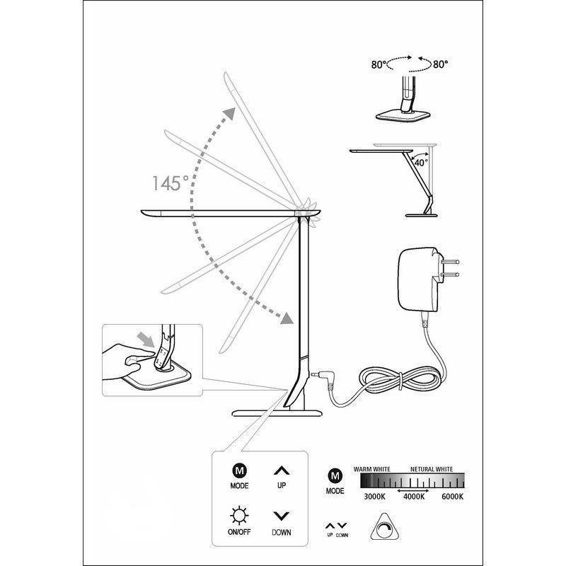 Die weiße design Schreibtischlampe Ilias ist hergestellt aus Kunststoff. Die weiße Schreibtischlampe ist mit integrierten 6 Watt LED Beleuchtung ausgestattet. Die integrierte LED-Beleuchtung hat die Lichtfarbe 5000K (Tageslicht weiß). Dieses Licht ist vergleichbar mit Tageslicht und macht alles gut sichtbar.